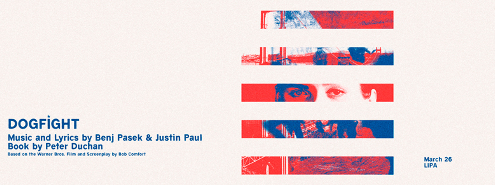 Dogfight contains war themes, misogyny, body shaming, sexual content, drug and alcohol abuse. Our productions are often devised in the rehearsal period with exact content only finalised close to the opening night, including special effects such as haze, sound effects and strobe lighting. You are welcome to email boxoffice@lipa.ac.uk a few days before the show for further information about the show content.